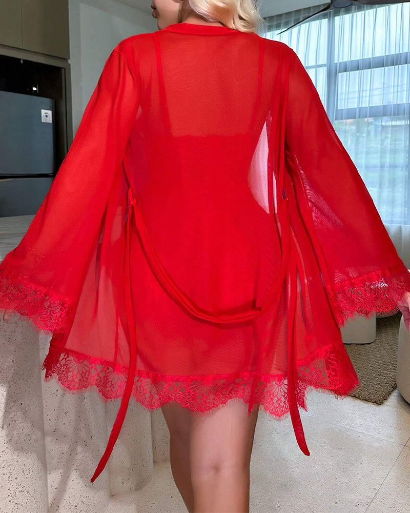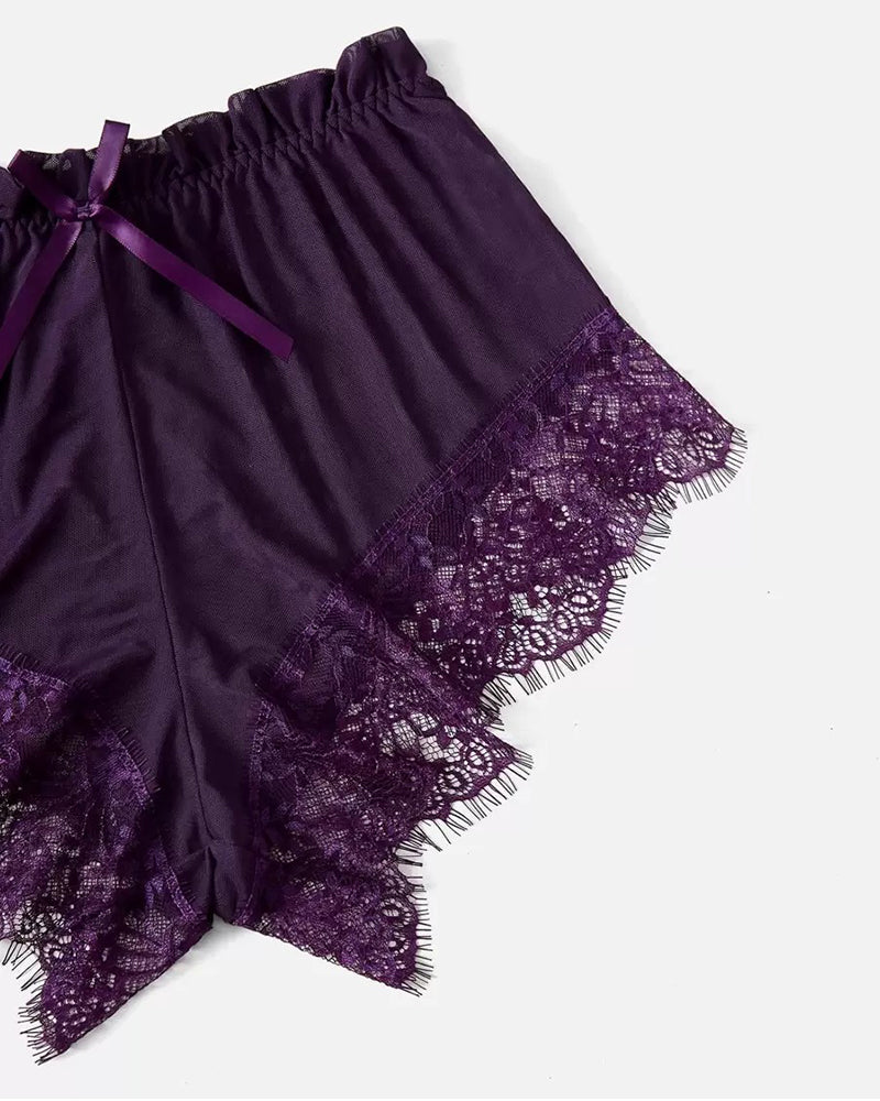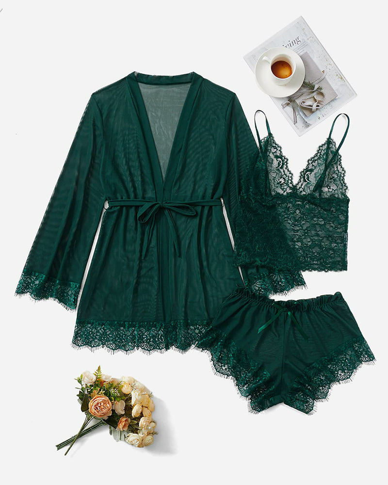 3-Piece Lace Sleepwear Set for Women – Cami, Shorts & Robe