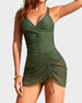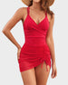 The ruched mesh panels and triangle cup bra lift and shape your bust, giving a sleek, slimming look for all body types.