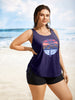 Shop Island Print Drawstring Adjustable Swim Top now and redefine your style with confidence at BloomChic. Tailored for mid and plus-size women. This trendy Swimwear Women, sizes 10-30. Color:Teal, Black, Indigo, Emerald, Eggplant, Mauve, Army Green, Midnight, Rosered, Sky Blue, Lilac;Style:Resort Vacation;Cup Type:Fixed cups;Pattern Type:Tropical;Prints:Landscape pattern;Details:Drawstring, Contrast;Pocket:No-pocket;Belt:No-belt;Chest pad:Non-removable padding