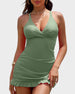 Deep V Cross-Back Ruched One-Piece Swimsuit
