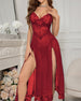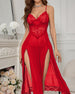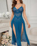 Sexy Lace Mesh Split Maxi Nightgown Set