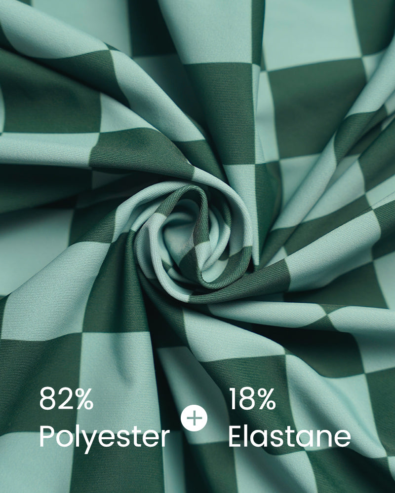 Green Check Short Sleeve Modest One-Piece Swimsuit