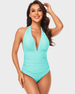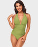 Introducing the Halter Neck Deep V Ruched One-Piece Swimsuit, a sophisticated and flattering choice for your beach or poolside escapades. This swimsuit combines elegant design with functional features to enhance your silhouette and boost your confidence.