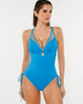 Chlorine-resistant fabric offers stretch, rich color, and a soft opaque finish. Breathable inner mesh provides lightweight shaping for defined curves.
