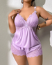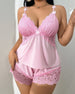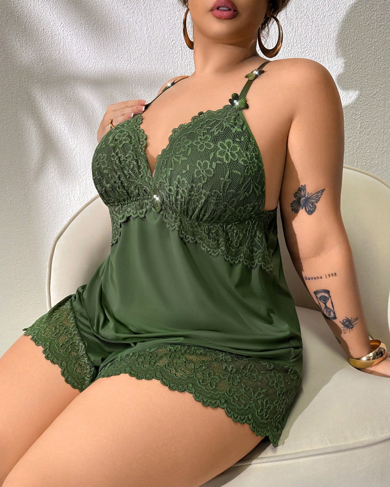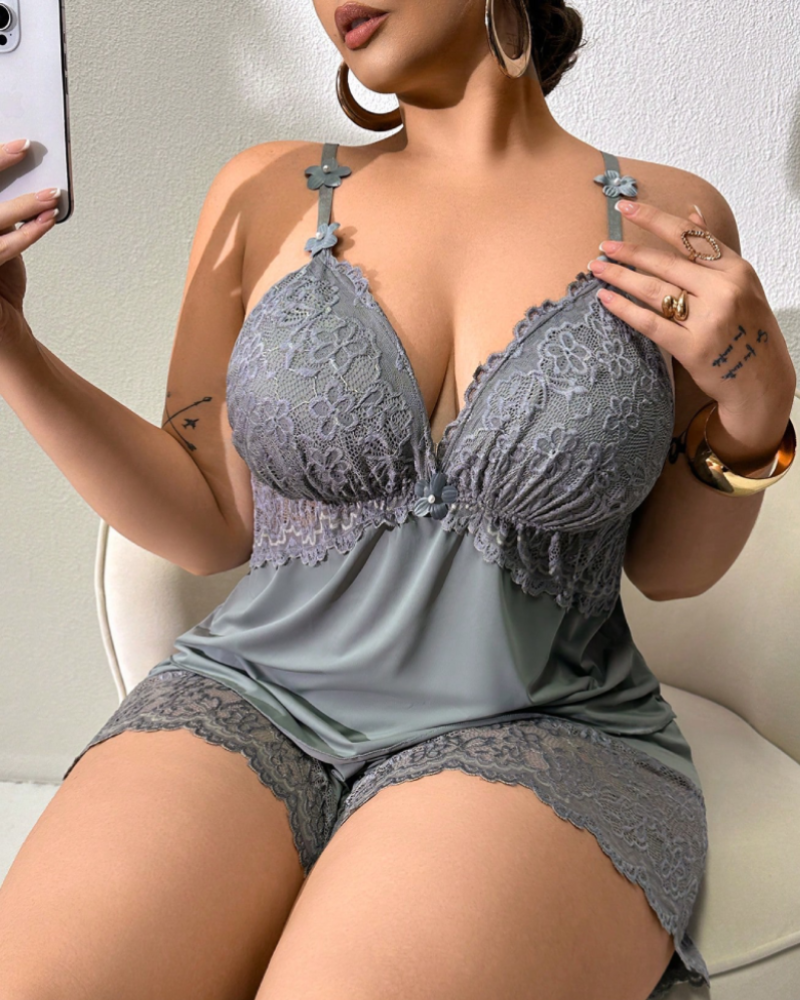 Plus Size Lace Satin Cami Pajama Set – Sexy Two-Piece Sleepwear for Women