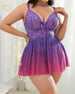 Feel flirty, confident, and effortlessly sexy in this plus size purple lace slit nightdress set. Designed with delicate lace and a daring side slit, this three-piece-inspired lingerie set highlights your curves while offering playful, feminine elegance. The matching thong completes the set, making it perfect for romantic evenings, special occasions, or simply treating yourself to something beautiful.