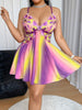 Rainbow Ombre Print Mesh Floral Embroidery Patchwork Backless Plus Size Women Camisole Nightgown
