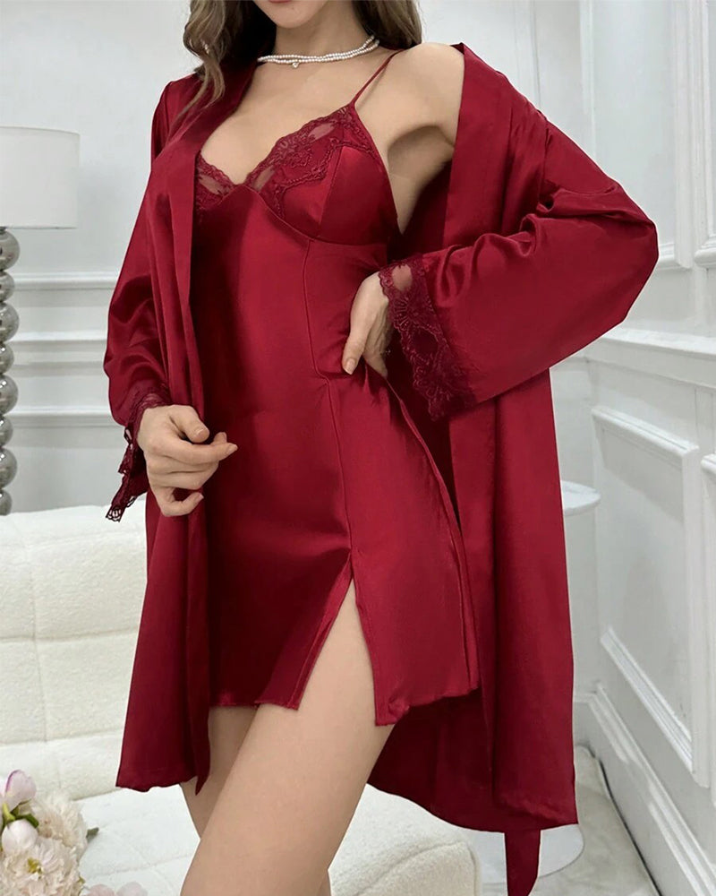 Satin Deep V Lingerie Set – Sexy Nightdress with Robe