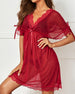 Sexy deep V lace suspender nightgown see-through bathrobe