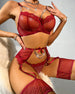 Sexy 4-Piece Lace & Fishnet Lingerie Set for Women – Underwire Chain Bra & Panty