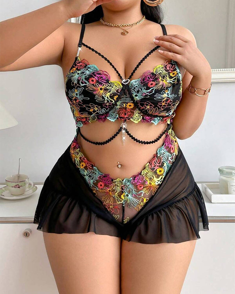 • Sheer Mesh with Floral Embroidery: Soft, semi-transparent mesh with delicate embroidered details for a romantic, sensual look.