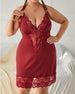 Plus Size Sexy Sheer Deep V Backless Cami Dress with Bow Detail & Panty
