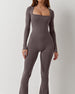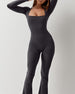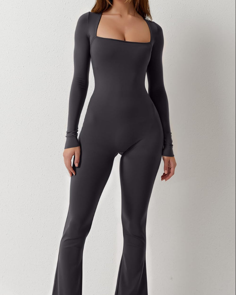【The front neckline of this jumpsuit is lower】 【The inseam of this jumpsuit is 30 "inch】 ·MATERIAL: 78% Nylon 22% Spandex·Imported·Jumpsuit Professional Grade Fabric: Moisture wicking, lightweight quick-dry, soft, skin-friendly, breathable and opaque.·Elastic closure·Machine Wash·This is a long sleeve full-Length flare jumpsuit with a square neckline in the front makes you look more sexy and also makes you feel more comfortable and warm in fall & winter.·Full length with trousers that gently flare at the knee, complete with a statement square neck that ensures a seductive look from all queens.·It's made with an ultra-flattering, smooth, high-stretch, sweat-wicking fabric with a cottony soft feel.·This wide leg jumpsuit outfits great for summer party, workout, vacation, weekend, family party, casual tourism and daily wear,a must have one piece modest outfits·Package Content: 1 x Womens Jumpsuits. This jumpsuit is a bodycon fit, please Refer to the Size Chart before Ordering. Anyother questions, please contact us freely.