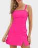 Figure-Enhancing Details – Waist ruching smooths and shapes, while the skirted bottom with side slit adds a playful touch and elongates the legs.