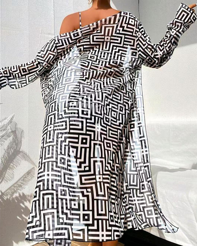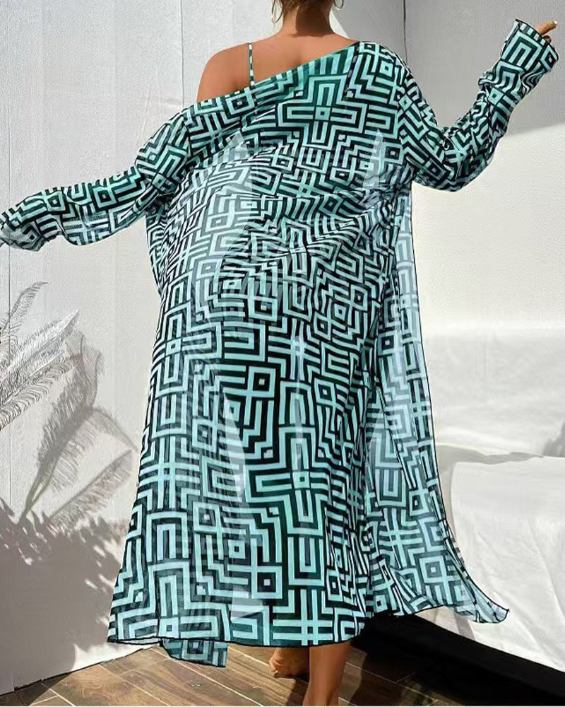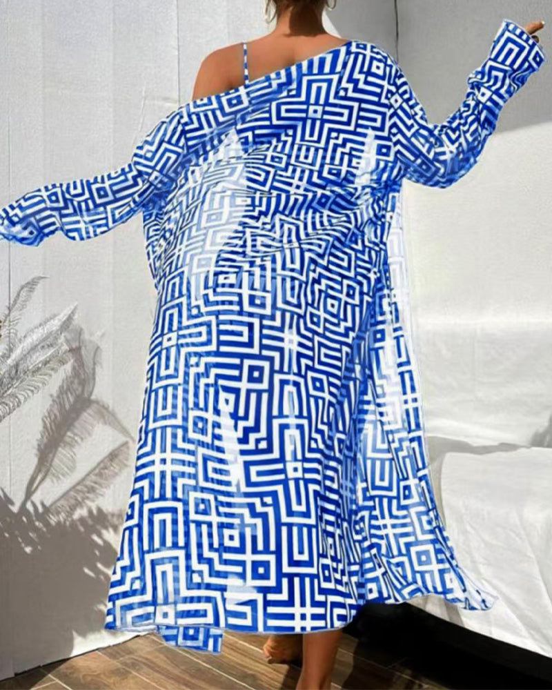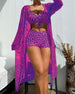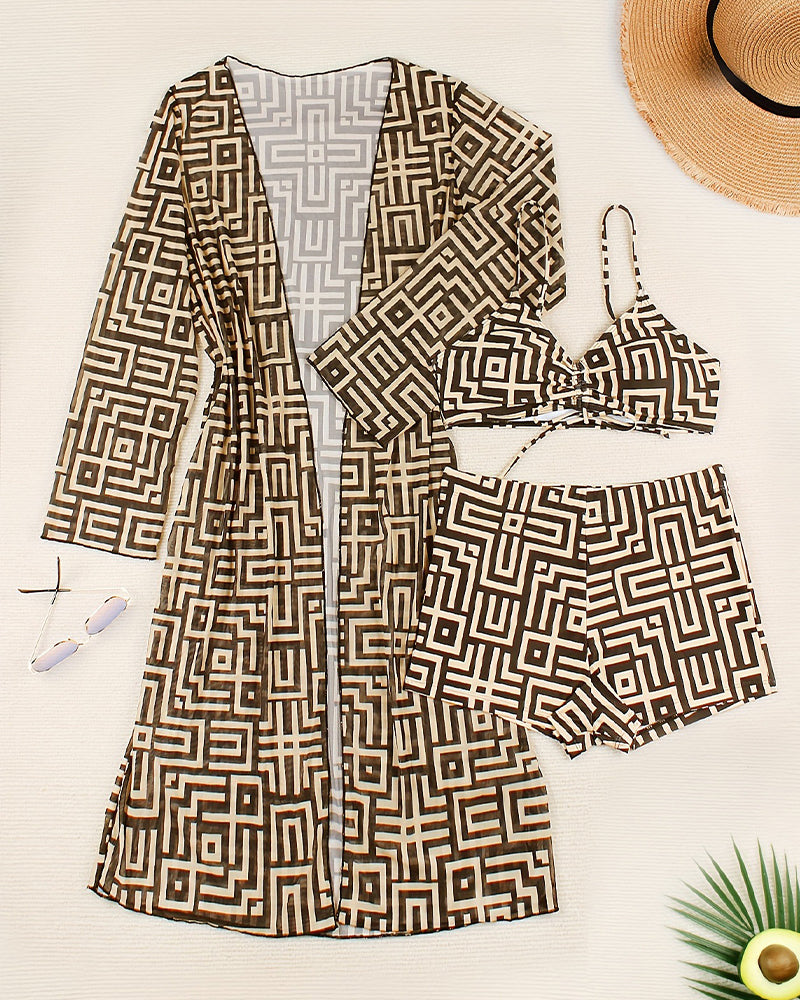 Women’s 3-Piece Swimsuit Set – Gathered Bikini Top, High-Waist Bottom & Beach Cover-Up