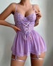 Features: contrast lace, mesh, lace up front, lingerie dress with leg rings