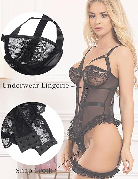 ❤️ Made of delicate lace and mesh, it provides an extremely sexy and elegant look. The opening buckle in the crotch guarantees comfort of wearing and ease of putting on.