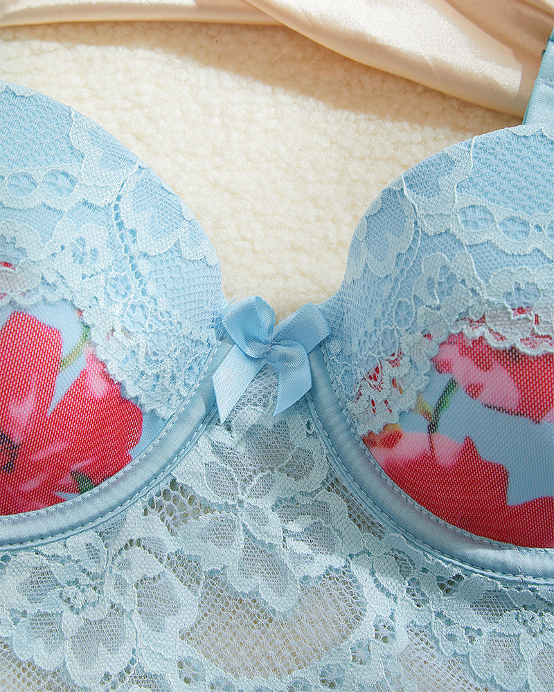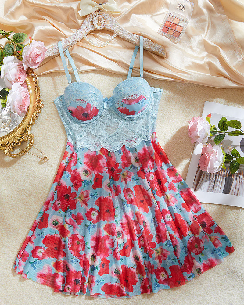 Features:floral print, lace nightgown chemise, spaghetti straps, underwire, flared