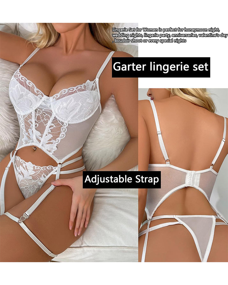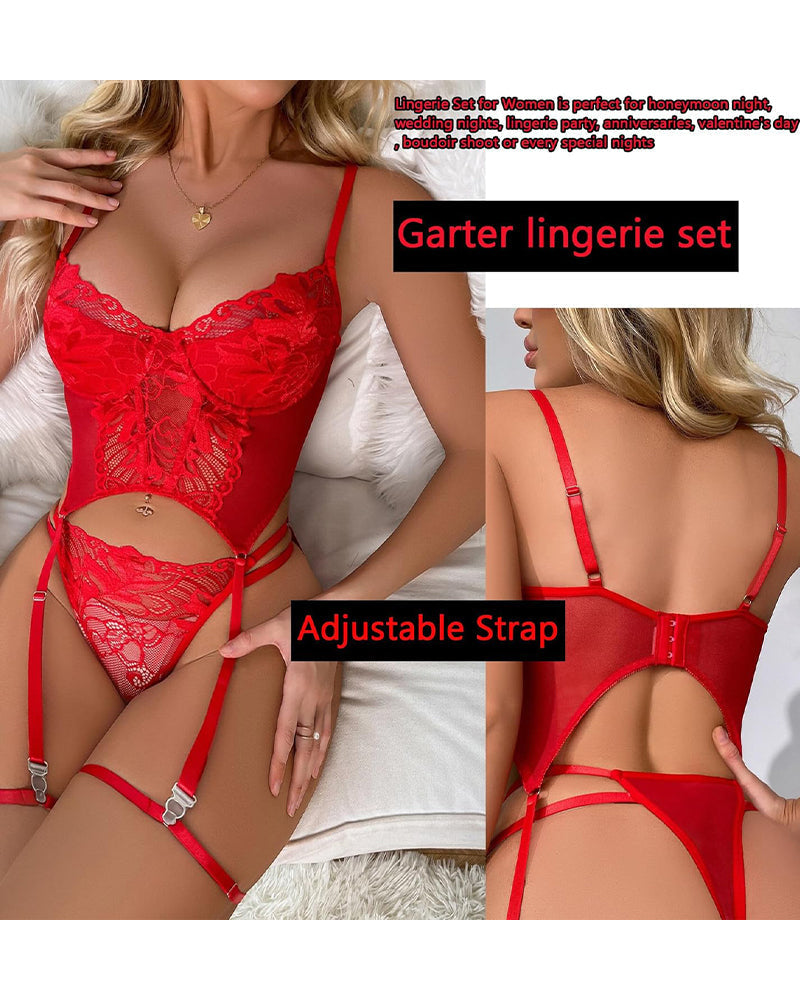 Sexy Underwire Lace Lingerie Set – Push Up Corset Top & Garter